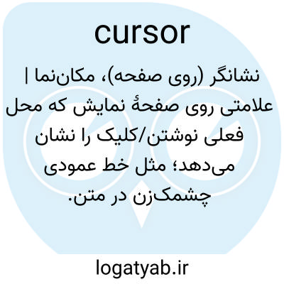 📌 فناوری دیجیتال، یک نشانگر متحرک، گاهی چشمکزن، که موقعیتی را روی صفحه نمایش نشان میدهد که کاراکتر بعدی وارد شده از صفحه کلید در آن ظاهر میشود، یا جایی که اقدام کاربر امکانپذیر است.