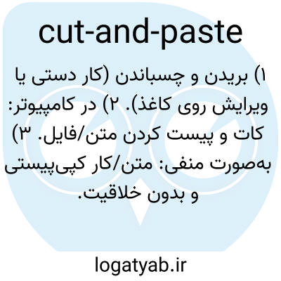 ۱) بریدن و چسباندن (کار دستی یا ویرایش روی کاغذ). ۲) در کامپیوتر: کات و پیست کردن متن/فایل. ۳) به‌صورت منفی: متن/کار کپی‌پیستی و بدون خلاقیت.