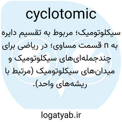 سیکلوتومیک؛ مربوط به تقسیم دایره به n قسمت مساوی؛ در ریاضی برای چندجمله‌ای‌های سیکلوتومیک و میدان‌های سیکلوتومیک (مرتبط با ریشه‌های واحد).