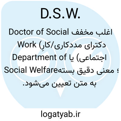 اغلب مخفف Doctor of Social Work (دکترای مددکاری/کارِ اجتماعی) یا Department of Social Welfare؛ معنی دقیق بسته به متن تعیین می‌شود.
