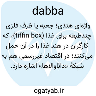 📌 (در آشپزی هندی) جعبه فلزی گردی که برای انتقال غذای گرم، چه از خانه و چه از رستوران، به محل کار شخص استفاده میشود