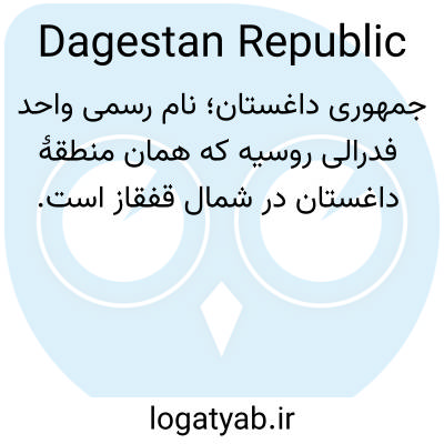 📌 همچنین به نامهای: داغستان. داغستان. جمهوری تشکیلدهنده روسیه جنوبی، در ساحل دریای خزر: در سال ۱۸۱۳ از ایران ضمیمه شد؛ منابع معدنی غنی. پایتخت: مخاچقلعه. جمعیت: ۲۵۸۴۲۰۰ (۲۰۰۲). مساحت: ۵۰۲۷۸ کیلومتر مربع (۱۹۴۱۶ مایل مربع)