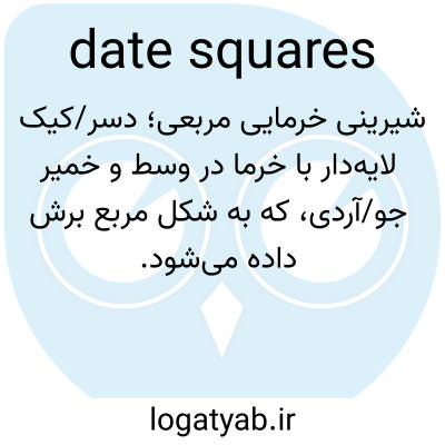 شیرینی خرمایی مربعی؛ دسر/کیک لایه‌دار با خرما در وسط و خمیر جو/آردی، که به شکل مربع برش داده می‌شود.