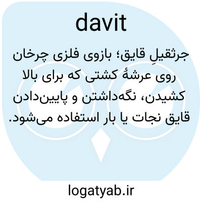 📌 هر یک از دستگاههای مختلف جرثقیلمانند که به صورت تکی یا دوتایی برای نگهداشتن، بالا و پایین بردن، به ویژه قایقها، لنگرها و محمولهها از روی دریچه یا کنار کشتی استفاده میشوند.