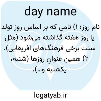 📌 (قبلاً، بهویژه در فرهنگهای کریولزبان) نامی که هنگام تولد به کودک سیاهپوست داده میشود، مطابق با آداب و رسوم آفریقایی، که نشاندهنده جنسیت کودک و روز هفتهای است که در آن متولد شدهاند، مانند نامهای مردانه و زنانه برای یکشنبه Quashee و Quasheba، دوشنبه Cudjo یا Cudjoe و Juba، سهشنبه Cubbena و Beneba، چهارشنبه Quaco و Cuba یا Cubba، پنجشنبه Quao و Abba، جمعه Cuffee یا Cuffy و Pheba یا Phibbi، و شنبه Quamin یا Quame و Mimba.