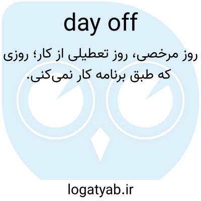 📌 یک روز مرخصی از کار، مدرسه یا یک تعهد مشابه؛ یک روز آزاد. برای مثال، سوفی همیشه از روز مرخصیاش برای انجام کارهایش استفاده میکرد. [اواخر دهه ۱۸۰۰]