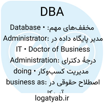 مخفف‌های مهم: • Database Administrator: مدیر پایگاه داده در IT • Doctor of Business Administration: درجهٔ دکترای مدیریت کسب‌وکار • doing business as: اصطلاح حقوقی در آمریکا برای نام تجاری متفاوت از نام ثبت‌شدهٔ قانونی شرکت.