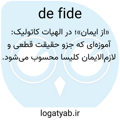 📌 ایمان: عبارتی که در کلیسای کاتولیک روم برای توصیف آموزههای خاص به عنوان وحی الهی به کار میرود، و بنابراین ایمان به آنها واجب است.