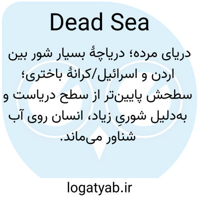 📌 دریاچهای نمکی بین اسرائیل و اردن: کمارتفاعترین دریاچه جهان، بیش از ۴۳۰ متر پایینتر از سطح دریا. آب این دریاچه که شوری شدید و مواد معدنی بالای آن، آن را برای گیاهان و جانوران نامناسب میکند، از دوران باستان برای اهداف بهداشتی مورد استفاده قرار میگرفته است.