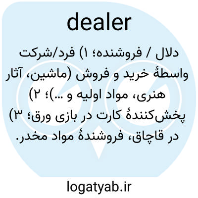 دلال / فروشنده؛ ۱) فرد/شرکت واسطهٔ خرید و فروش (ماشین، آثار هنری، مواد اولیه و …)؛ ۲) پخش‌کنندهٔ کارت در بازی ورق؛ ۳) در قاچاق، فروشندهٔ مواد مخدر.