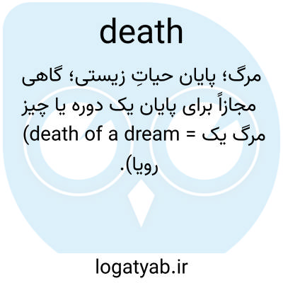 مرگ؛ پایان حیاتِ زیستی؛ گاهی مجازاً برای پایان یک دوره یا چیز (death of a dream = مرگ یک رویا).