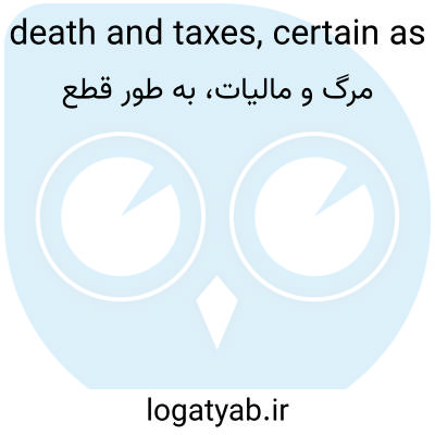 📌 همچنین، قطعی مانند مرگ و مالیات. ناگزیر رخ خواهد داد، اجتنابناپذیر است، زیرا در کسب و کار او شکست خواهد خورد، قطعی مانند مرگ و مالیات. این عبارت توسط بنجامین فرانکلین در نامهای (۱۷۸۹) ابداع شد و از آن زمان تاکنون تکرار شده است، نیاز مکرر دولت به درآمد احتمالاً تضمینکننده محبوبیت مداوم آن است.