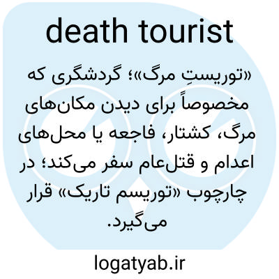 «توریستِ مرگ»؛ گردشگری که مخصوصاً برای دیدن مکان‌های مرگ، کشتار، فاجعه یا محل‌های اعدام و قتل‌عام سفر می‌کند؛ در چارچوب «توریسم تاریک» قرار می‌گیرد.