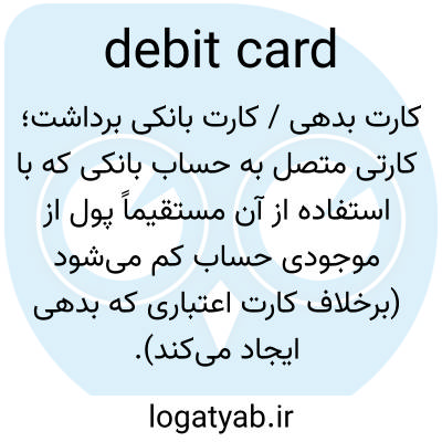 📌 کارت پلاستیکی که شبیه کارت اعتباری است اما مانند چک عمل میکند و از طریق آن پرداختهای مربوط به خریدها یا خدمات به صورت الکترونیکی و مستقیماً از حسابهای بانکی دارندگان کارت به حسابهای بانکی مؤسسات خردهفروشی شرکتکننده واریز میشود.