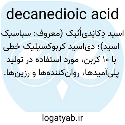 اسید دِکانِدی‌اُئیک (معروف: سباسیک اسید)؛ دی‌اسید کربوکسیلیک خطی با ۱۰ کربن، مورد استفاده در تولید پلی‌آمیدها، روان‌کننده‌ها و رزین‌ها.