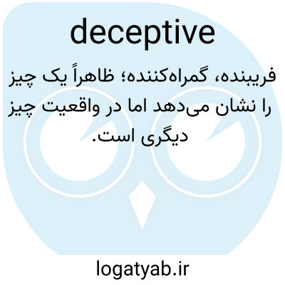 فریبنده، گمراه‌کننده؛ ظاهراً یک چیز را نشان می‌دهد اما در واقعیت چیز دیگری است.