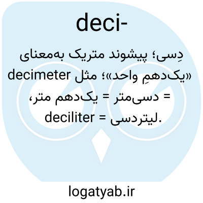 📌 یک شکل ترکیبی به معنای «دهم» که در کلماتی که واحدهای سیستم متریک را نشان می‌دهند (دسی‌لیتر) استفاده می‌شود؛ در این مدل، به سیستم‌های دیگر (دسی‌بل) نیز تعمیم داده شده است.
