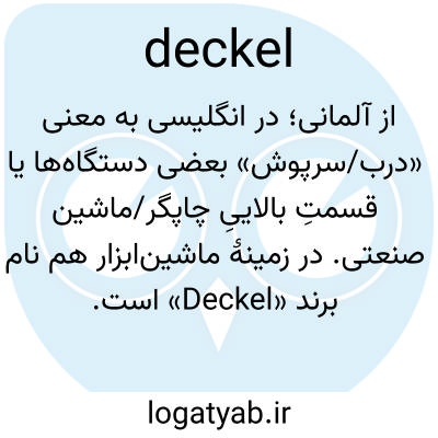 از آلمانی؛ در انگلیسی به معنی «درب/سرپوش» بعضی دستگاه‌ها یا قسمتِ بالاییِ چاپگر/ماشین صنعتی. در زمینهٔ ماشین‌ابزار هم نام برند «Deckel» است.