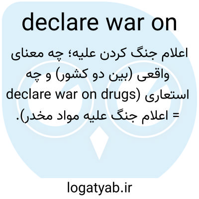 اعلام جنگ کردن علیه؛ چه معنای واقعی (بین دو کشور) و چه استعاری (declare war on drugs = اعلام جنگ علیه مواد مخدر).