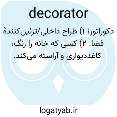 دکوراتور؛ ۱) طراح داخلی/تزئین‌کنندهٔ فضا. ۲) کسی که خانه را رنگ، کاغذدیواری و آراسته می‌کند.