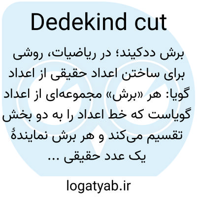 📌 دو زیرمجموعه غیرتهی از یک میدان مرتب، مانند اعداد گویا، به طوری که یک زیرمجموعه مجموعهای از کرانهای بالای زیرمجموعه دوم و زیرمجموعه دوم مجموعهای از کرانهای پایین زیرمجموعه اول باشد: میتواند برای تعریف اعداد حقیقی بر حسب اعداد گویا استفاده شود.
