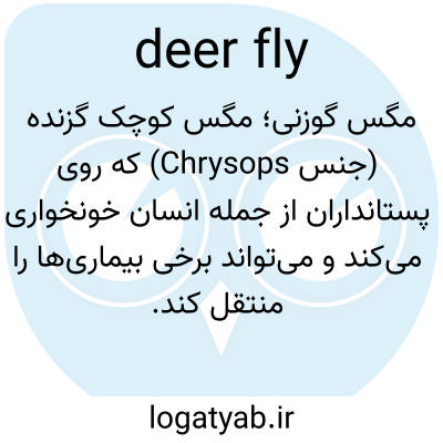 📌 هر یک از چندین مگس تابانید از جنس Chrysops که مگس ماده آن ناقل تولارمی در گوزن، دام و انسان است.