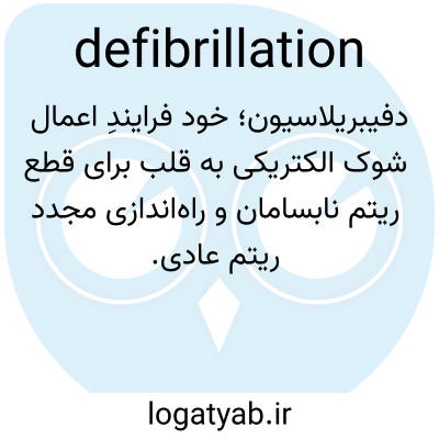 📌 خاتمه فیبریلاسیون عضله قلب و بازگرداندن ریتم طبیعی قلب، به ویژه توسط یک یا چند شوک الکتریکی که توسط پدال‌هایی روی قفسه سینه اعمال می‌شود.