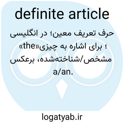 📌 حرف تعریفی، مانند the در انگلیسی، که اسمی را که توصیف میکند، به عنوان اسمی مشخص یا معین طبقهبندی میکند.