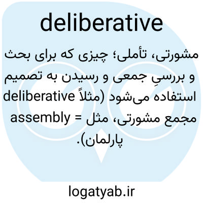 مشورتی، تأملی؛ چیزی که برای بحث و بررسیِ جمعی و رسیدن به تصمیم استفاده می‌شود (مثلاً deliberative assembly = مجمع مشورتی، مثل پارلمان).