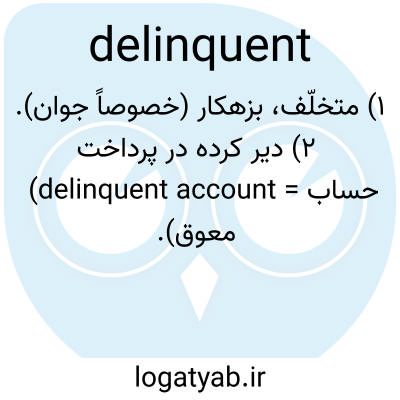 ۱) متخلّف، بزهکار (خصوصاً جوان). ۲) دیر کرده در پرداخت (delinquent account = حساب معوق).