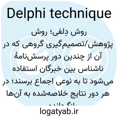 📌 یک تکنیک پیشبینی یا تصمیمگیری که از پرسشنامههای کتبی برای از بین بردن نفوذ روابط شخصی و تسلط شخصیتهای قوی بر کمیتهها استفاده میکند
