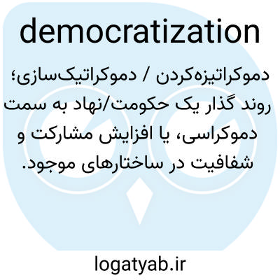 دموکراتیزه‌کردن / دموکراتیک‌سازی؛ روند گذار یک حکومت/نهاد به سمت دموکراسی، یا افزایش مشارکت و شفافیت در ساختارهای موجود.