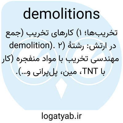 تخریب‌ها؛ ۱) کارهای تخریب (جمع demolition). ۲) در ارتش: رشتهٔ مهندسی تخریب با مواد منفجره (کار با TNT، مین، پل‌پرانی و…).