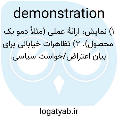 ۱) نمایش، ارائهٔ عملی (مثلاً دمو یک محصول). ۲) تظاهرات خیابانی برای بیان اعتراض/خواست سیاسی.