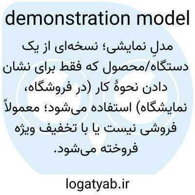 📌 یک محصول تقریباً جدید، مانند ماشین یا ماشین لباسشویی، که فقط برای نشان دادن عملکرد آن توسط یک فروشنده استفاده شده است و با تخفیف برای فروش ارائه میشود