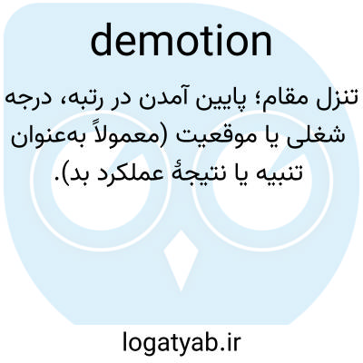 📌 عمل یا فرآیند تنزل به درجه، رتبه، طبقه یا موقعیت پایین‌تر، یا نتیجه چنین تنزلی.