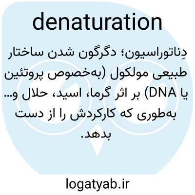 📌 بیوشیمی، عمل یا فرآیند تغییر حالت اولیه یک پروتئین یا موارد مشابه از طریق روشهای شیمیایی یا فیزیکی.