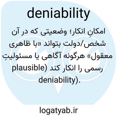 📌 توانایی انکار چیزی، مانند آگاهی از یا ارتباط با یک فعالیت غیرقانونی.