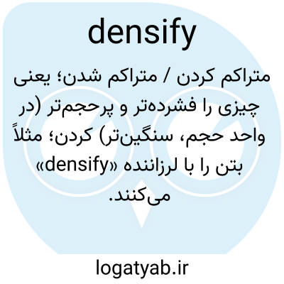متراکم کردن / متراکم شدن؛ یعنی چیزی را فشرده‌تر و پر‌حجم‌تر (در واحد حجم، سنگین‌تر) کردن؛ مثلاً بتن را با لرزاننده «densify» می‌کنند.