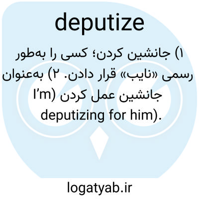 ۱) جانشین کردن؛ کسی را به‌طور رسمی «نایب» قرار دادن. ۲) به‌عنوان جانشین عمل کردن (I’m deputizing for him).