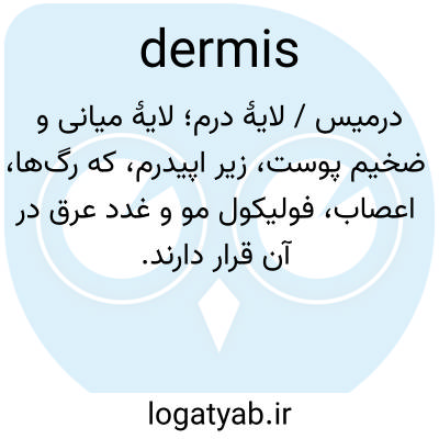 درمیس / لایهٔ درم؛ لایهٔ میانی و ضخیم پوست، زیر اپیدرم، که رگ‌ها، اعصاب، فولیکول مو و غدد عرق در آن قرار دارند.
