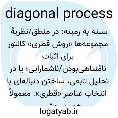 📌 منطق ریاضی، شکلی از استدلال که در آن یک عضو جدید از یک مجموعه از فهرستی از اعضای شناختهشده آن ساخته میشود، به این صورت که جملهی nام عضو جدید با جملهی nام عضو nام متفاوت است. بنابراین، عضو جدید با تمام اعضای فهرست متفاوت است.