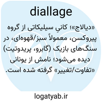دیالاژ، دیالاژ، اسم. کانیای تقریباً همخانواده با اوژیت، به رنگ قهوهای، خاکستری یا سبز، با ساختار لایهای و با درخشش فلزی در صورت شکستگی از عرض.