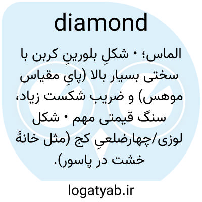 الماس؛ • شکلِ بلورینِ کربن با سختی بسیار بالا (پایِ مقیاس موهس) و ضریب شکست زیاد، سنگ قیمتی مهم • شکل لوزی/چهارضلعیِ کج (مثل خانهٔ خشت در پاسور).