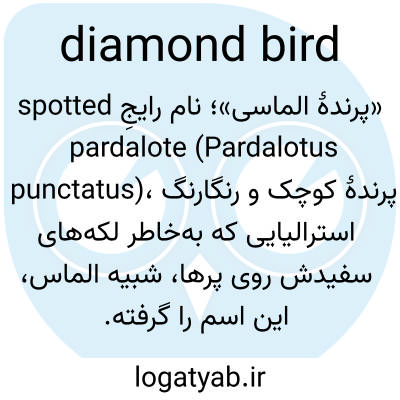 «پرندهٔ الماسی»؛ نام رایجِ spotted pardalote (Pardalotus punctatus)، پرندهٔ کوچک و رنگارنگ استرالیایی که به‌خاطر لکه‌های سفیدش روی پرها، شبیه الماس، این اسم را گرفته.