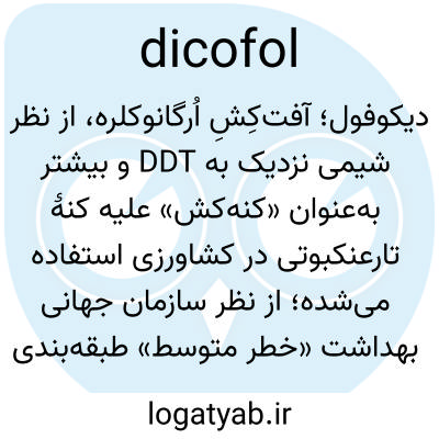 📌 یک جامد بلوری سفید، C14H9Cl5O، مشتق شده از DDT و برای محافظت از محصولات کشاورزی در برابر کنهها استفاده میشود.
