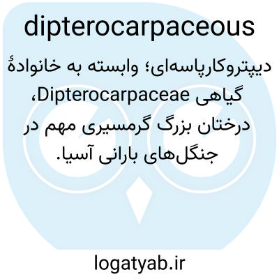 📌 مربوط به، یا متعلق به Dipterocarpaceae، خانوادهای از درختان که عمدتاً بومی مناطق گرمسیری جنوب شرقی آسیا هستند و میوههای دوبال دارند. بسیاری از گونهها چوب و رزین مفید تولید میکنند.