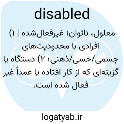 معلول، ناتوان؛ غیرفعال‌شده | ۱) افرادی با محدودیت‌های جسمی/حسی/ذهنی؛ ۲) دستگاه یا گزینه‌ای که از کار افتاده یا عمداً غیر فعال شده است.