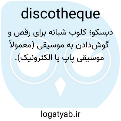 📌 کلوپ شبانهای برای رقصیدن با موسیقی زنده یا ضبطشده و اغلب دارای سیستمهای صوتی پیشرفته، نورپردازی استادانه و سایر جلوههای ویژه.
