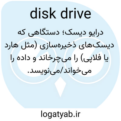 درایو دیسک؛ دستگاهی که دیسک‌های ذخیره‌سازی (مثل هارد یا فلاپی) را می‌چرخاند و داده را می‌خواند/می‌نویسد.